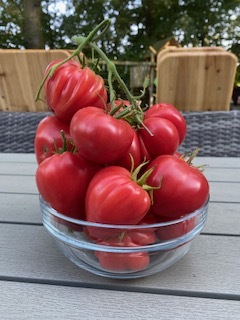 Die Acme ist eine Stabtomate welche unbegrenzt wächst. Die Fruchtform ist eher breitrund und sie Frucht hat meist 3-5 Fruchtkammern. So eine Frucht kann zwischen 140 und 418 Gramm auf die Waage bringen. Die Narbe ragt au dem Innenkegel heraus wodurch sie schon kreuzungsgefährdet sein kann.