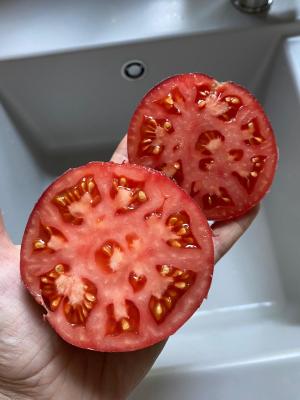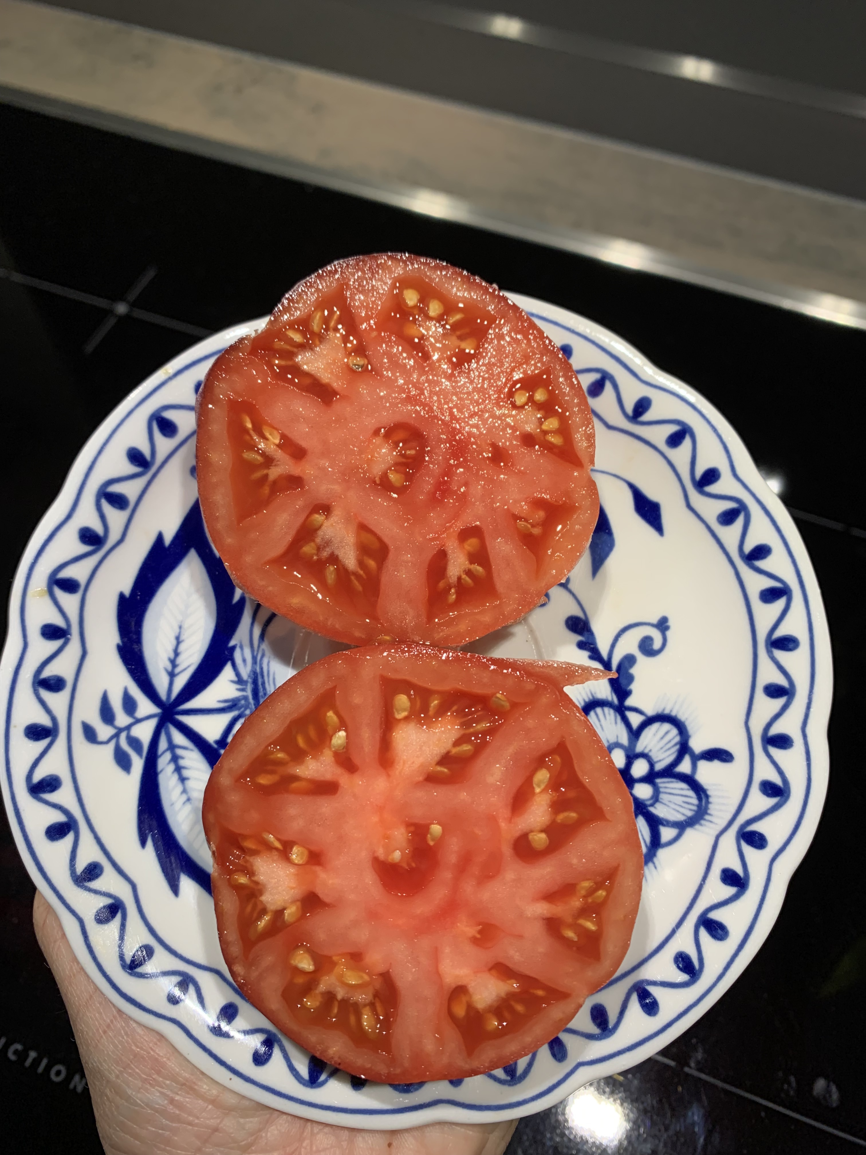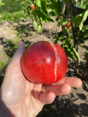 Die Stabtomate wird ca 1,80 m hoch und hat viele unterschiedliche groß Früchte. Brad Gates ist der Züchter dieser Sorte und hat wieder mal gezeigt, dass sich die vielen Jahre des züchtens auch lohnen können.