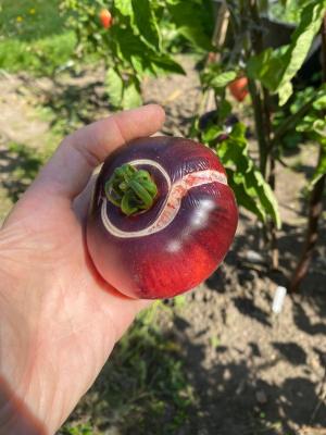 Und hier kommt die Königin der Farben. Die Amethyst Jewel hat wunderschöne Früchte, die herrlich in der Sonne glänzen. Optisch ein absolutes Highlight. Der Geschmack ist tatsächlich süß als auch etwas etwas säuerlich. So richtig einordnen konnte ich es bislang nicht.
