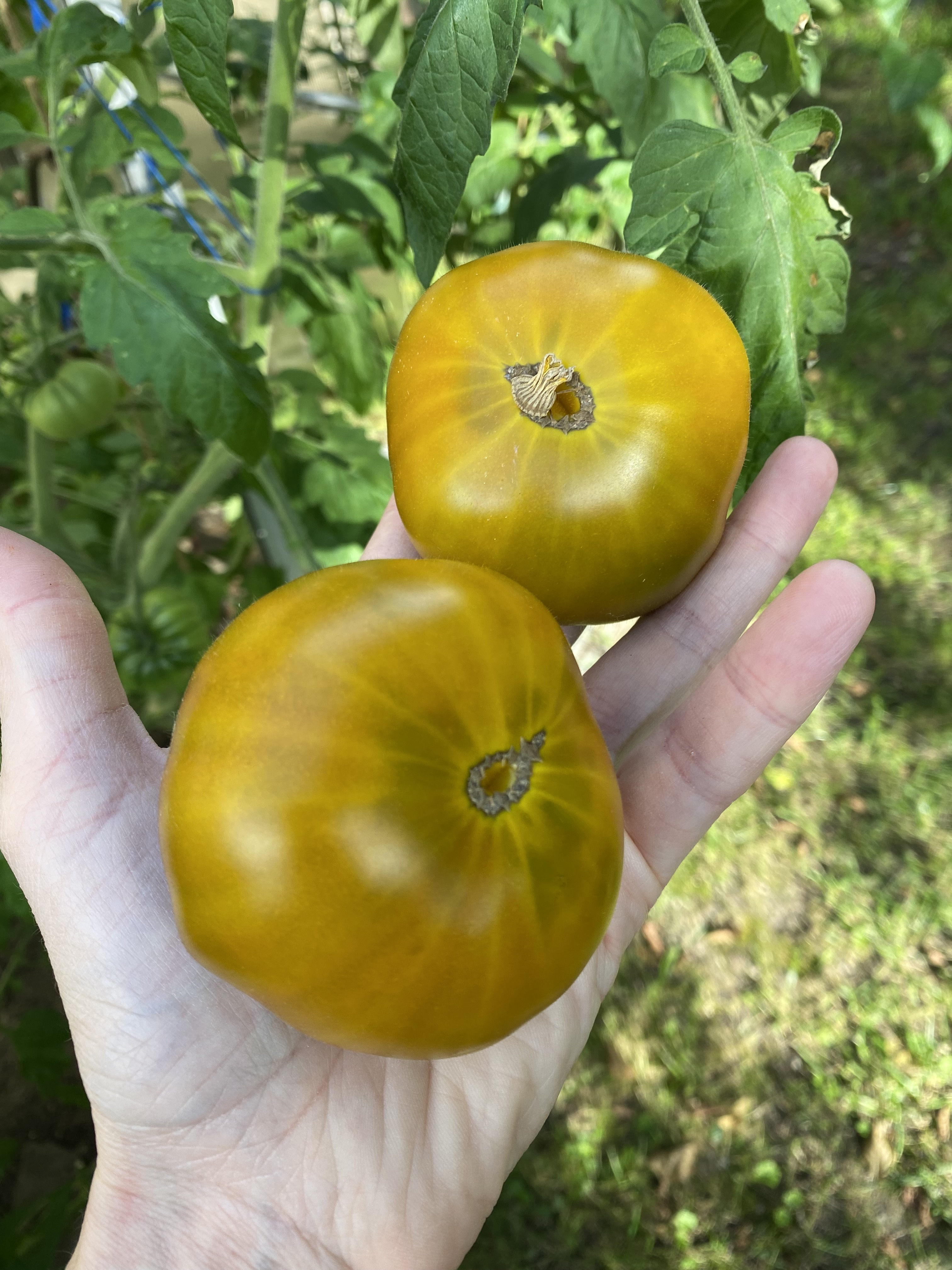 Viele Blätterwerk und mehrtriebig gezogen zeigte diese Pflanze ihre Kraft. An einem einzigen Wickel hingen bis zu 8 von diesen tollen Gelb- grünen Früchten.