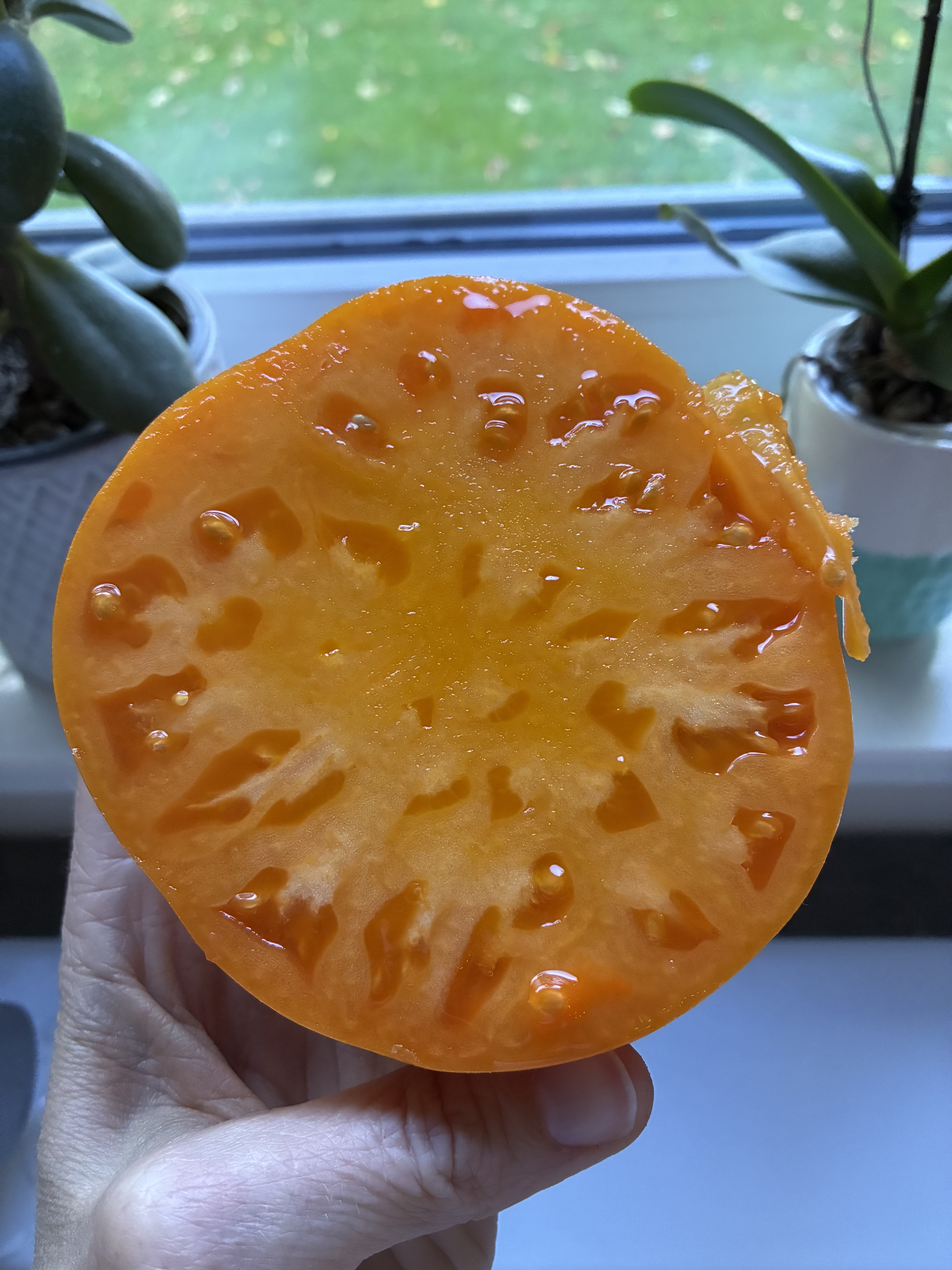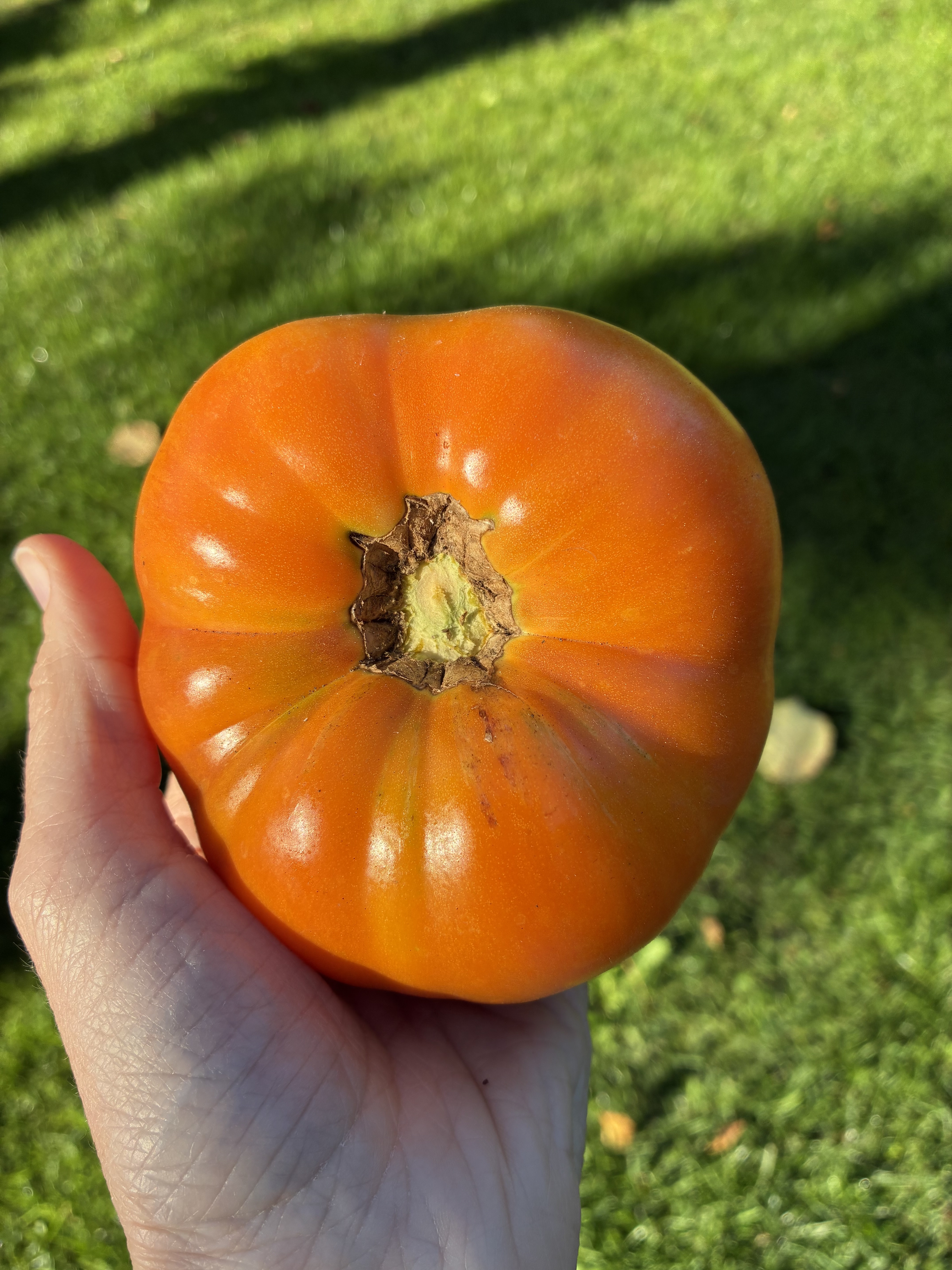 Diese Pflanze wird weit über 2 m hoch und hat normales sowie zartes Laub. Sie bildet große, stumpfe Früchte welche in aprikose bzw orangener Farbe strahlen. Es handelt sich hierbei um eine alte Sorte aus West Virginia. Die Sorte wurde erstmals 1985 bei SSE bin Jim und Cynde DeWeese gelistet.